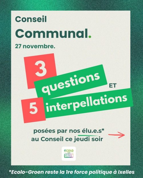 Ce soir c’est Conseil communal à Ixelles. L’ordre du jour proposé par la majorité est plutôt mince mais heureusement nous venons avec un paquet de questions et d’ interpellations 📑📝 …